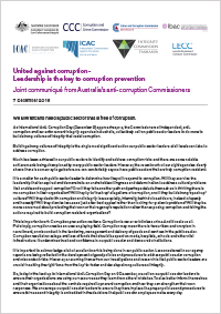 As International Anti-Corruption Day (December 9) approaches, we, the Commissioners of independent, anti-corruption and law enforcement integrity agencies in Australia, collectively call on public sector leaders to do more to build strong cultures of integrity that resist corruption.