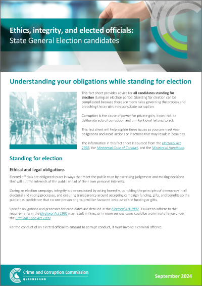 This factsheet provides ad vice for all candidates standing for election during an election period. Standing for election can be complicated because there are many rules governing the process and breaching these rules may constitute corruption.