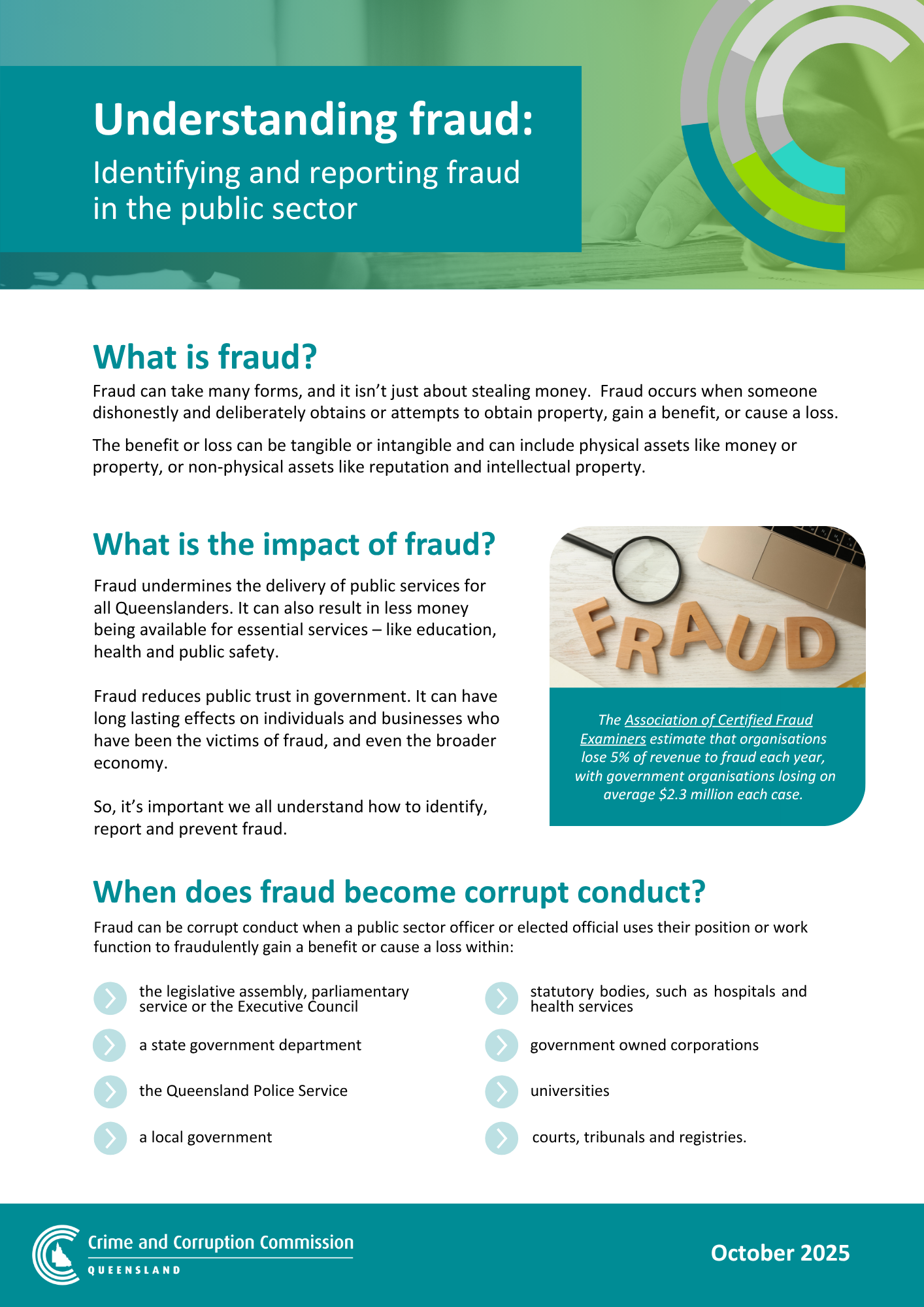 This factsheet provides information about fraud and what impact it can have in the Queensland public sector.